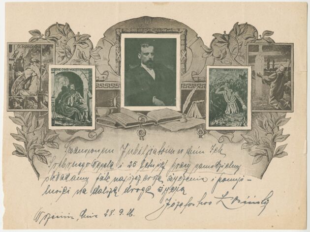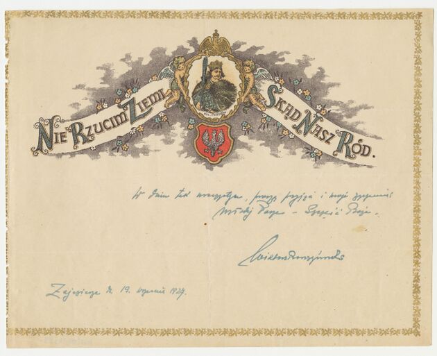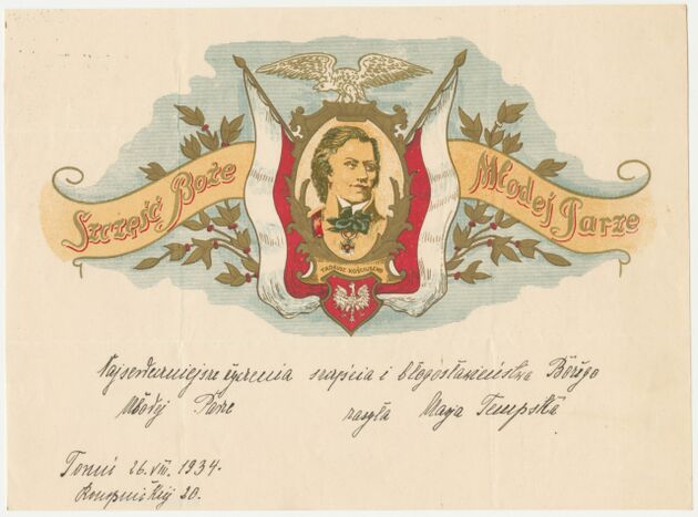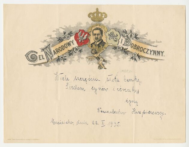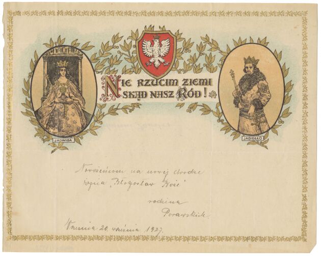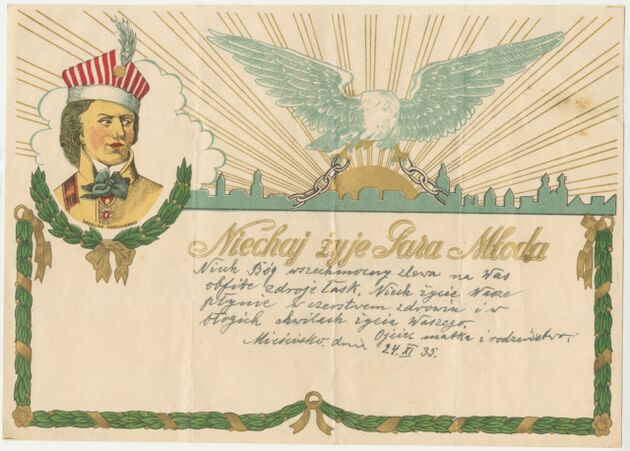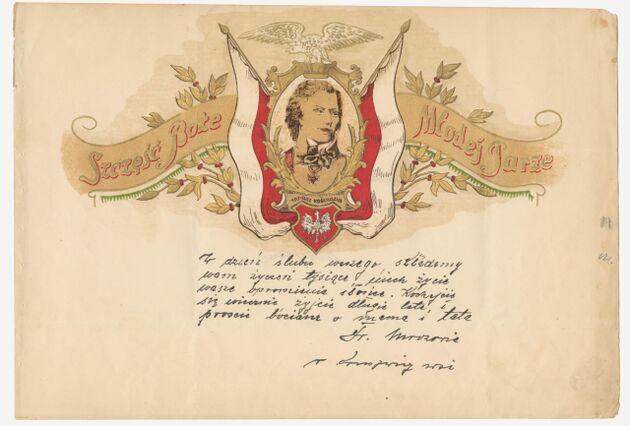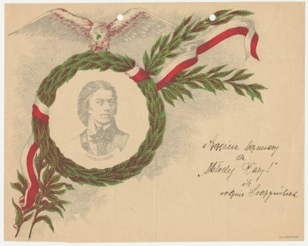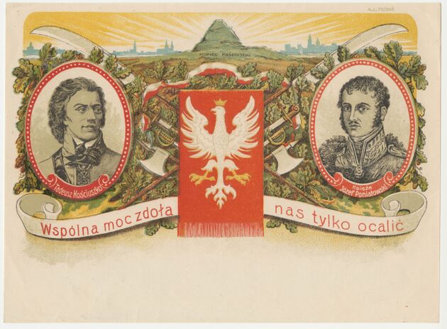 Telegram - blankiet ozdobny z portretami gen. Tadeusza Kościuszki i księcia Józefa Poniatowskiego >>