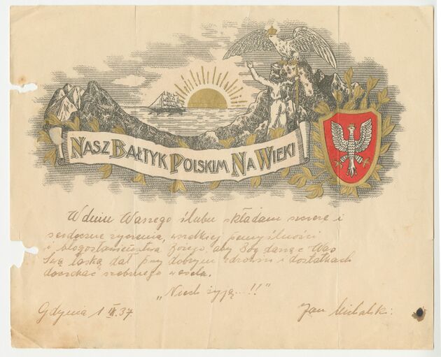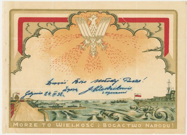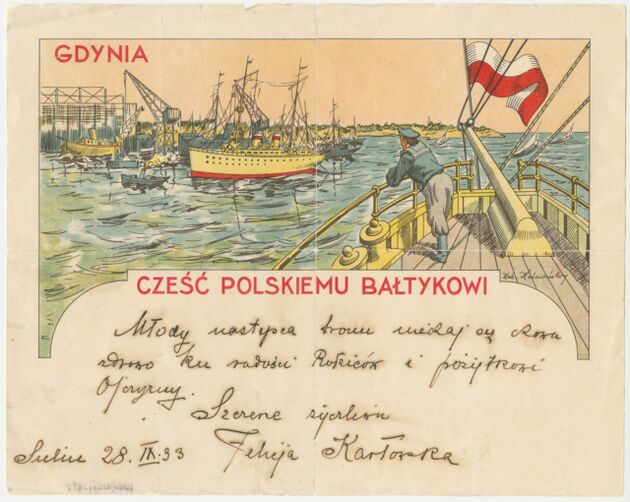 W zbiorach Muzeum Miasta Gdyni znajduje się ponad 50 egzemplarzy telegramów patriotycznych wydanych od około 1895 r. do wybuchu II wojny światowej. Wiele z nich to tradycyjne telegramy kościuszkowskie, nawiązujące do ogólnopolskich wydarzeń. Znaczną część stanowią także telegramy podkreślające przywiązanie Polski do morza, gdzie ideę Polski Morskiej prezentowano w alegoryczny sposób w postaci marynarzy, polskiej floty oraz —najważniejszego “dziecka II Rzeczypospolitej” — Gdyni i jej portu. Obok grafik zamieszczano hasła oddające cześć polskiemu morzu, takie jak: “NASZ BAŁTYK POLSKIM NA WIEKI”, “MORZE TO WIELKOŚĆ I BOGACTWO NARODU”, “BAŁTYK TO NASZ!”, “ZIEMIA I MORZE POLSKIE NAS WITA” czy “CZEŚĆ POLSKIEMU BAŁTYKOWI!”.