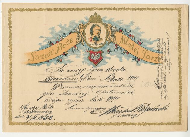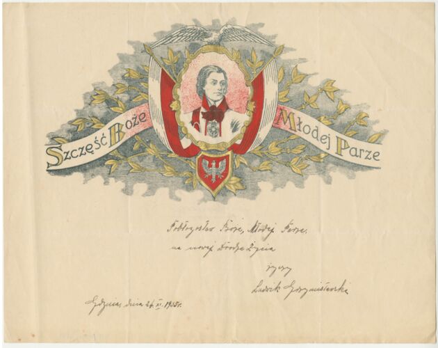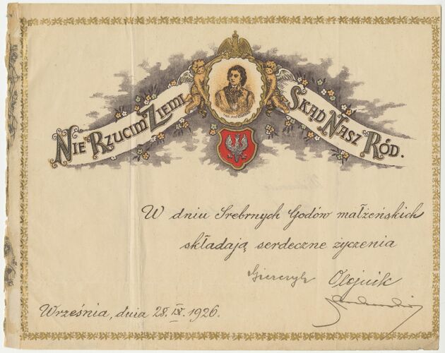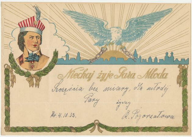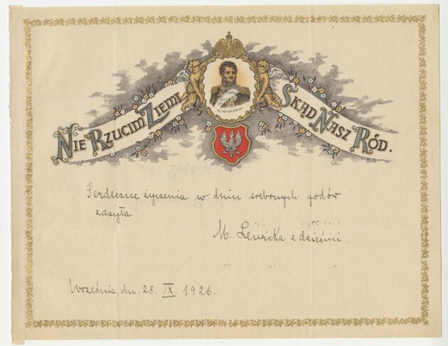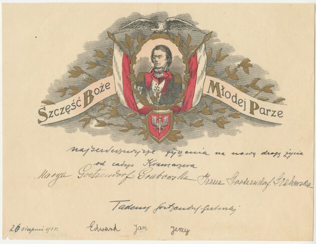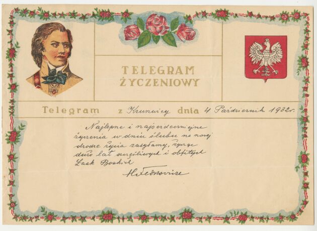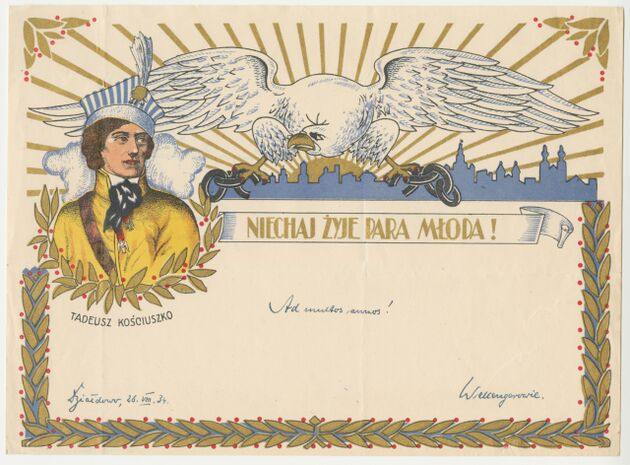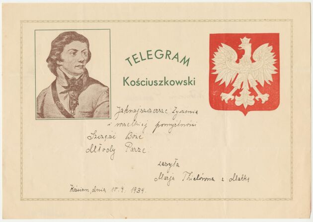 Telegram okolicznościowy z życzeniami z okazji dnia ślubu, z wizerunkiem gen. Tadeusza Kościuszki >>