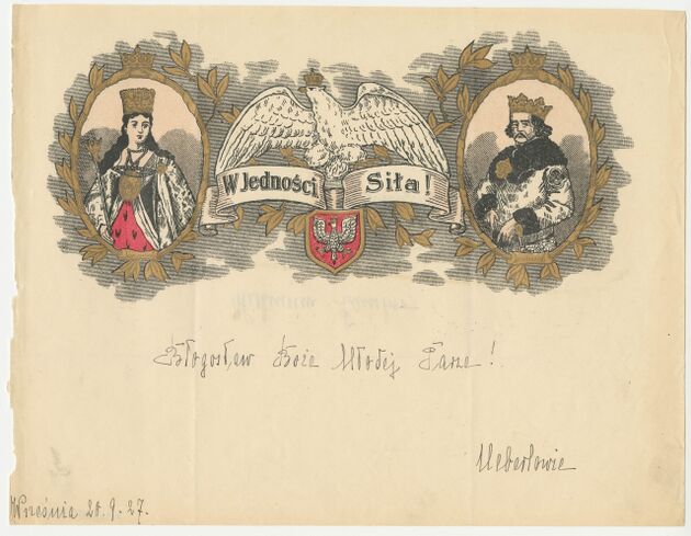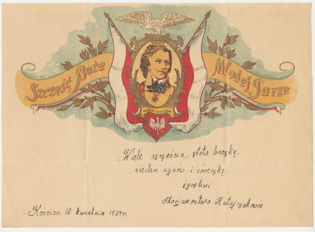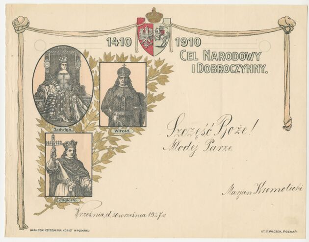 W Poznaniu, w zaborze pruskim od 1885 r. jednym z patriotycznych działań stało się drukowanie i sprzedawanie barwnych blankietów telegramowych, początkowo z wizerunkiem generała Tadeusza Kościuszki. Z tego powodu zaczęto je nazywać telegramami kościuszkowskimi. Wykorzystywano je do składania życzeń w czasie świąt narodowych, rodzinnych czy osobistych. Z czasem zaczęły powstawać na nich nowe grafiki o treściach historycznych i patriotycznych z ważnymi dla Polski wydarzeniami i postaciami. Obok rysunków zamieszczano pokrzepiające hasła: “Jedność Narodu”, “Honor i Ojczyzna”, “Oświata. Pilność. Praca, Oświata ludu dokona cudu” a także cytaty z Mazurka Dąbrowskiego Józefa Wybickiego (Jeszcze Polska nie zginęła) i Roty Marii Konopnickiej (Nie rzucim ziemi skąd nasz ród). Mimo promowania pozytywistycznej pracy u podstaw, czasem odwoływano się również do romantycznej i martyrologicznej wizji narodu polskiego i haseł w rodzaju “Jeszcze kielich naszej doli wiele kropel ma, trzeba cierpieć, pić powoli, wypić aż do dna!”. Od 1912 r., kiedy drukowaniem telegramów zajęło się Towarzystwo Czytelni Ludowych, zwyczaj rozpowszechnił się również w innej części zaboru pruskiego — na Pomorzu.