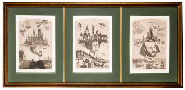 Tryptyk Metropolitarny z alegoriami miast Gdańska, Gdyni i Sopotu nawiązuje do kultowej, XVII-wiecznej powieści „Don Kichote” Miguela Cervantesa – jest to dzieło niezwykle pomysłowe, pełne swoistego uroku i humoru. Przez pracę Gdynia – port rybacki 1946 przemawia z kolei aura melancholii - siedzące na pomoście, zamyślone kobiety zdają się snuć refleksje na temat niedawnych dramatów wojennej rzeczywistości.