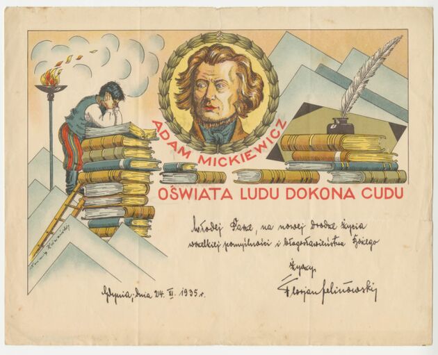 Nasz Bałtyk polskim na wieki— telegramy patriotyczne/Telegram okolicznościowy z życzeniami z okazji ślubu, z wizerunkiem Adama Mickiewicza MMG-HM-I-4522 >>